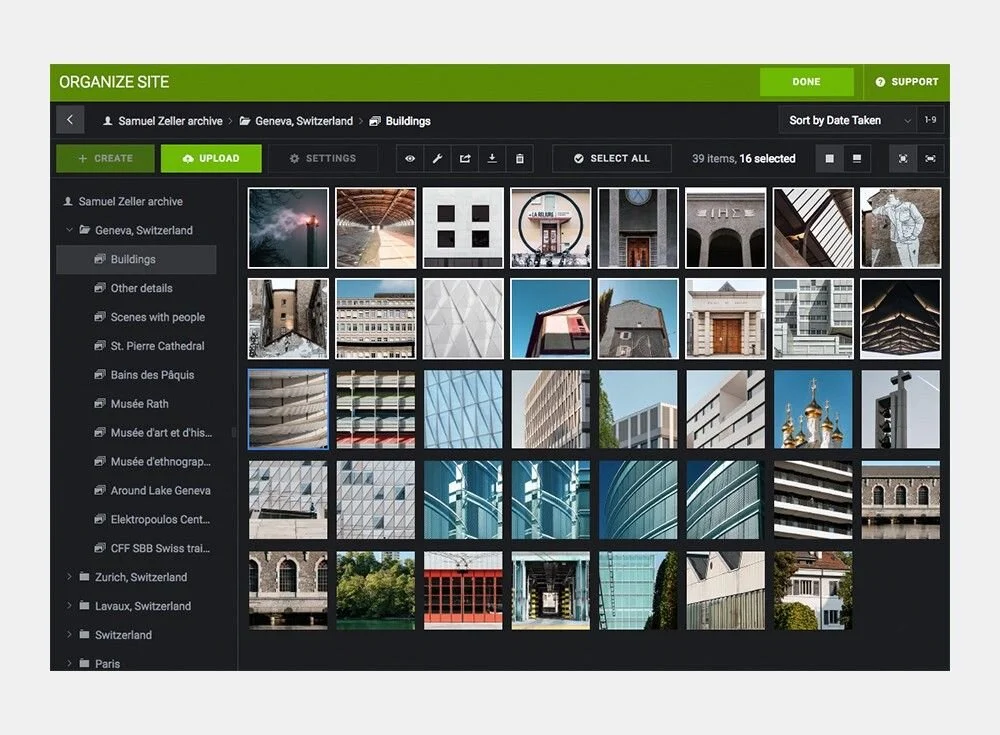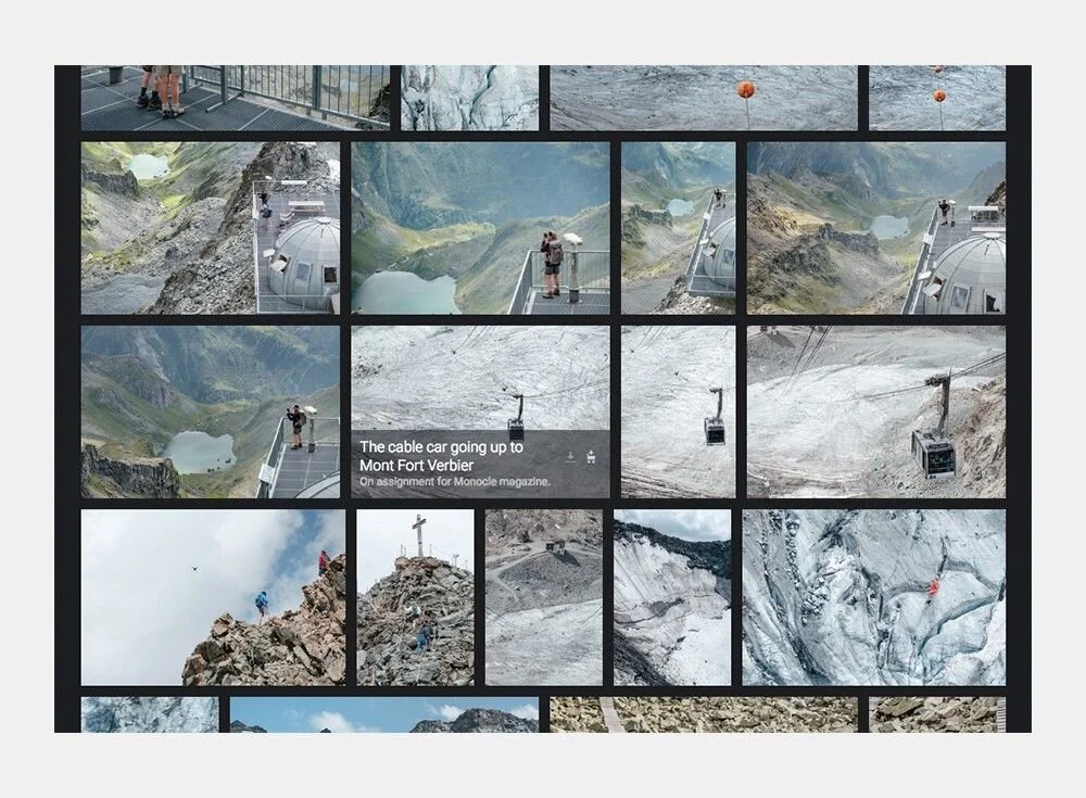 This allows me or visitors to filter the entire archive either by searching for a specific word or by clicking on one of the tags. Tags are also conditional. You can display all images containing “snow” that are in the folder “Geneva” for example. Tags can also be combined, for example you can display all images tagged with “architecture” then filter down the results to only show the images tagged with “winter” to view all the buildings I’ve shot during that time of the year.